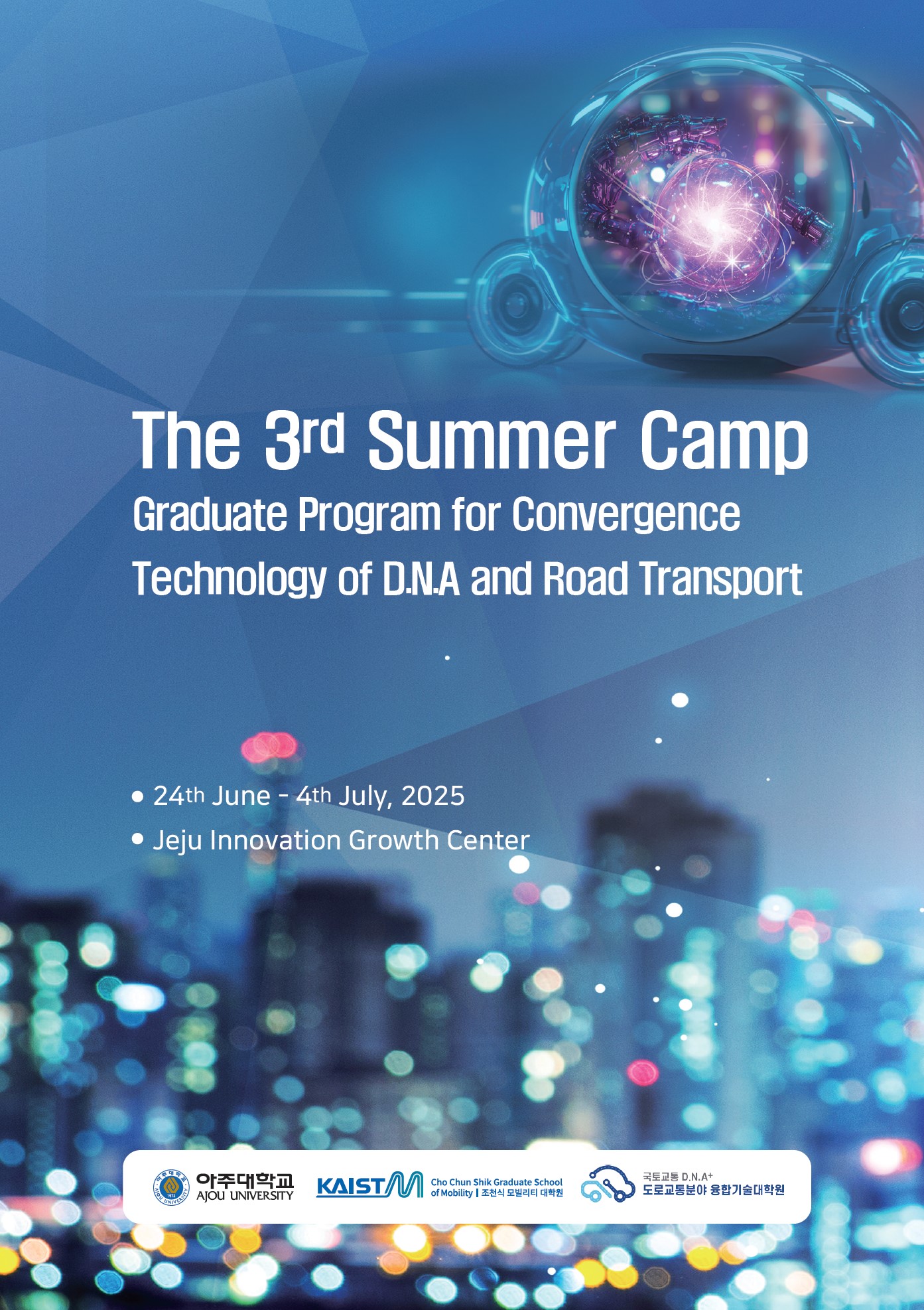 The 3rd Summer Camp, hosted by the Graduate Program for Convergence Technology of D.N.A and Road Transport, took place from June 24th to July 4th, 2025, at the Jeju Innovation Growth Center.