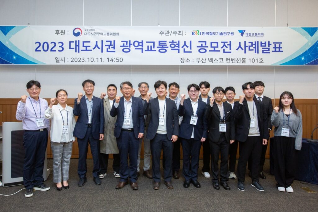 Congratulations! TUPA researchers Kim Min, Baek Songmi, and Dr. Chun Kyunghoon have won the Traffic Research Society Chairman’s Award at the ‘2023 Metropolitan Area Transportation Innovation Competition,’ sponsored by the Ministry of Land, Infrastructure and Transport Metropolitan Area Transportation Committee (hereinafter referred to as the Committee), and jointly organized by the Railway Research Institute and the Korean Society of Transportation. The prize money is 1.5 million won.